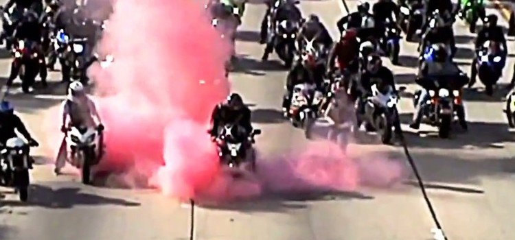 At one point, a bike sent up a cloud of pink smoke and the girlfriend accepted the proposal. But police was not amused, quite obviously. The stunt was captured on video, went viral on the Internet, with the 24-year old groom – Hector Martinez – and his close friends bragging about their stunt. Not a good thing.
