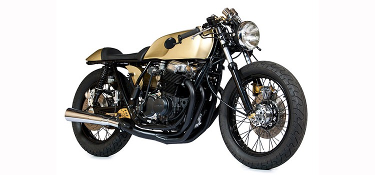 The black and gold stunner boasts a new seat unit, constructed from ¼” steel round bar and sheet steel; Kott designed it to reflect the angularity of the Honda’s fuel tank and accommodate an integrated turn signal/brake light. While the mini speedo and tach are attached to the stock mounting holes for the original ignition switch, Kott crafted a pair of 2″ standoffs to lower the height of the gauge faces and also drilled the headlight to allow the drive cables to pass through the bucket. New rearsets improve the riding position, while the CB’s rear master cylinder has been replaced with a late-Eighties Yamaha FZR600 item. The rims feature black oxide spokes, beautifully complementing the gold anodizing, chrome and black powder coat elsewhere on the bike.