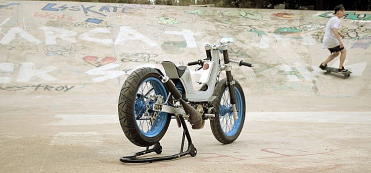 An intriguing blend of a Derby, a KTM and a Beta Trueba with a hint of salt flat racing is this sweet little moped from the guys at Vintage Addiction Crew.