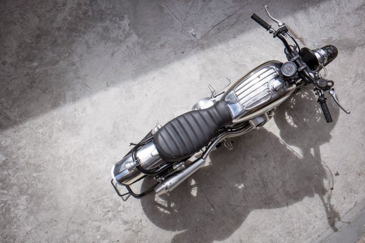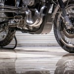 We wanted the fenders to match the number plate and the gas tank, so we made those out of aluminium as well and added stainless steel mounting brackets. We fabricated a front skid plate (also out of aluminium) with ventilation slots to cool the voltage regulator and then fashioned a small dashboard out of mild steel that we designed to fit the stock tachometer and warning lights. We then designed stainless foot pegs and foot controls that are mounted in the mid-section of the bike.