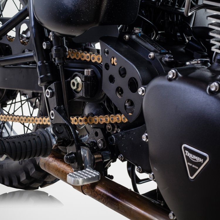 Built for soccer legend, model, UNICEF ambassador and motorcycle enthusiast David Beckham, the British Customs DBSC is a custom Triumph Bonneville designed to be a functional bike that can perform in various conditions. The DBSC features numerous British Customs-exclusive customizations that instantly grab the eye such as the Motogadget Mini Triple Clamp, Oury road grips, burnished Drag Pipes, and a distressed leather Slammer seat. Every detail was thought out, designed, and tested for seamless integration into the life of a man with highly refined yet adventurous tastes.
