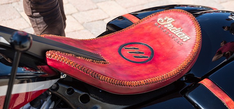 Up top, the Springfield’s fuel tank was modified for a vintage look and topped with a polished dash piece featuring stock gauges, and a hand-tooled leather seat diverts the eye to the back of the bike, where you’ll find hand-formed side panels, bags and rear fender.