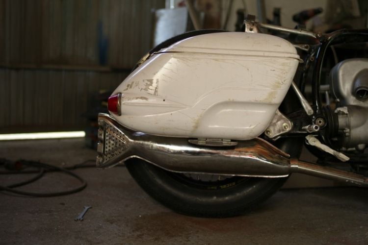 The motor and suspension are completely rebuilt, while the restored frame is now nickel-plated. The fishtail pipes come from a Velocette Thruxton, with the massive Hoske long-range tank dominating the looks. The guys also threw in a Silent Hektik coil, an electronic ignition system, lightweight AntiGravity lithium battery and Motogadget instruments while at it.