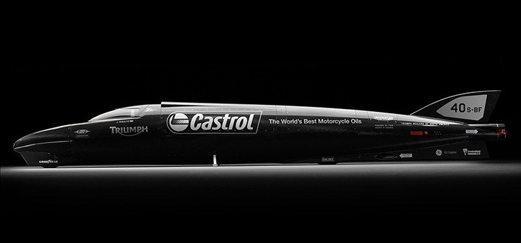 And while the Bonneville was the fastest production bike when it was launched in 1959, today’s record-attempting Castrol Rocket pays homage to Triumph’s Rocket III which, at 2.3 liters, boasts the world’s largest production motorcycle engine. The Castrol Rocket features a pair of turbocharged Rocket III engines making in excess of 1000 horsepower. Triumph technology that’s proven itself from the Salt Flats to the production line and now, back to the Salt Flats.