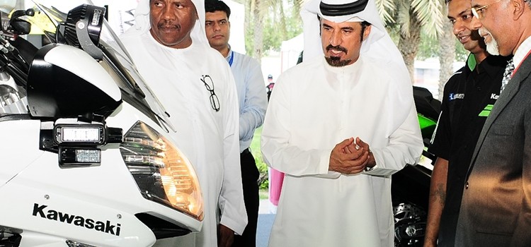 Mohammed Ben Sulayem, 14 times Middle East rally champion, and President of Emirates Motor Sports Federation and board member of FIA, who inaugurated the show, visited the Kawasaki stand and inspected the Kawasaki GTR, a high performance bike which is extensively in use by law enforcement agencies in the United States and Europe. The customised bike has a 185 horsepower engine which offers exceptional manoeuvrability and advanced traction control.