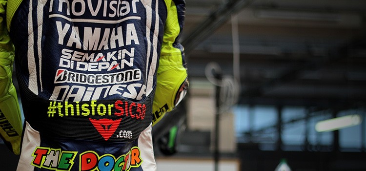 Valentino Rossi lined up at his home circuit at Mugello yesterday wearing a truly special Dainese suit. With #thisforSIC58 embroidered on the back, Rossi showed his support to the Marco Simoncelli foundation, an organisation dedicated to the memory of his friend Marco. The suit will be worn by Rossi during the race weekend and will be put up for auction on Wednesday 18 June at 1pm.