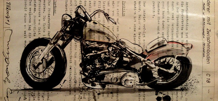 Found these interesting drawings while floating around on the interwebs. Done by a Danish guy called Cay Brøndum, these old papers are from the Sixties, German instruction for some kind of Industrial machinery. What Cay has done is turned these papers into small art pieces made the old style way, using ink, brush and watercolour.