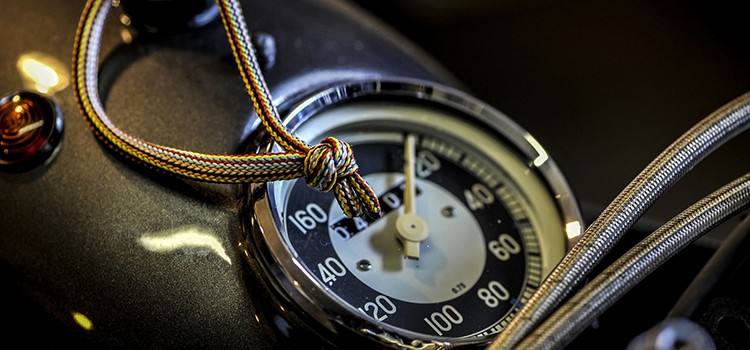 The custom BMW’s 800cc mill was totally revamped by Moto Sumisura, along with upgraded forks and suspension. The bigger fuel tank comes from an R100R and the handle bars from an R51, along with custom brake hoses, rearview mirror and an Avon rear tyre. Look carefully, and you’ll also see the Inge-designed fuel filler cap, which replicates the dial of the IWC watch. The classic theme is finally set off with side racks to accommodate a handbag and a leather Brooks toolbox welded to the tank.