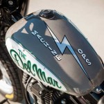Also fitted are lightweight Del Mar wheels, inspired by the original billet flat track wheel designed by Roland nearly 13 years ago. The 19″ Machine Ops finish front and rear wheels with Dunlop flat track race tyres fit into a narrow 150mm fender well, with use of ride height-adjustable Progressive Suspension 422 series RAP shocks.