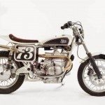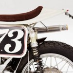 After working on several sketches, the final decision was to go with a dirt track type design. The bike was to be as simple and light as possible, along with a small tank, solo seat and escapes from the top. On the other hand, the team also wanted to improve the performance, which they did by means of BMW K75 forks and brake system, Mikuni carbs, K&N air filters, Öhlins shocks and a Fondseca quick-action throttle. The LSL handlebars are fitted with Oury grips, and are accompanied by a Motogadget Motoscope Tiny analog speedo and Bates headlight in the front.