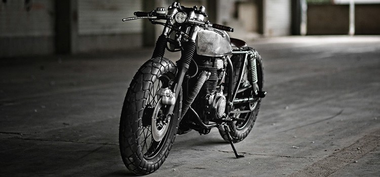 The engine, forks and gearbox have been rebuilt and modified where necessary. The swingarm has been stretched 10cm and the unwanted frame mounts and tabs ground off, along with the entire tail, before painting. Stock shock absorbers were fitted and the rear brake adapted to fit the extended swingarm. The gothic theme blends with intricate speed holes on the engine casings and engraving work on the bare fuel tank, a metallic canvas space for artistic expression. Voltaire would approve I’m sure.