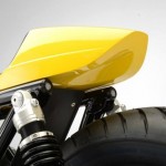 The complete bodywork, including the fuel tank, seat section, headlight fairing and front fender is handmade from 1.5mm aluminium sheet metal. The sandblasted and powdercoated frame is joined by an upgraded suspension with new fork tubes, internals, and progressive springs, while at the back you can find YSS Z-Series shocks with adjustable preload, rebound and length. The original 18″ Le Mans cast wheels are black powdercoated and shod with Avon Roadrider tyres sized 110/80 at the front and and 130/80 at the back. Braking is taken care of by Brembo two-piston calipers at both ends, clamping on drilled stainless steel rotors. LSL clip-on bars and hand-fabricated, fully adjustable rearsets complete the picture.