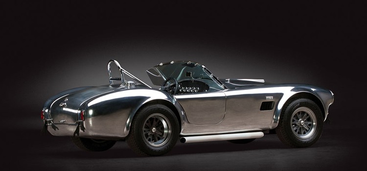 This Continuation 289 Cobra, which wears the FIA fender flares, cut-back doors, and exposed bare-polished aluminium bodywork, is perhaps the most desirable of all, as it is outfitted with a larger 427-cubic inch V8 that can pump out 525 horsepower. The staff at Shelby’s Las Vegas facility built this motor from a Shelby 351 Windsor crate engine and bored it out and modified with it AFR heads, turning it into a 427.