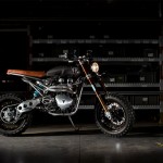 To ensure the drive gets to the dirt, the custom Triumph Scrambler is finished with 17″ Kineo wheels shod with a 180 section rear and 130 section front tyre. Why 17″ front wheels? Well, the team figured the option to fit a pair of super sticky slicks would turn the ultimate Scrambler into an outrageous Supermoto style track tool – which is no bad thing.