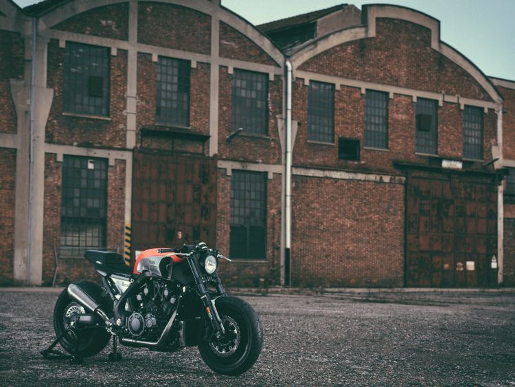 JvB-moto’s vision for the VMAX Yard Built special was to transfer the stock VMAX into a radical dragster meets café racer concept, exaggerating the brutal power for all to see. A second key element in the design is a tribute to the 30-year history of the machine, encapsulating elements from the first roll out of the bike in 1985.