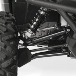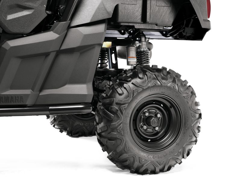 The Wolverine-R’s compact new chassis is shorter and narrower than the design used on the 3-seater Yamaha Viking, and these reduced dimensions give enhanced mass centralization for more agile handling. Also contributing towards the Wolverine-R’s mass centralization is the relocation of the engine 148mm further forward than on the Viking, as well as the location of the two seats further inward – and to handle more extreme terrain the chassis features a new undercarriage design that is upswept on each side. With its new ‘inset’ body design, the massive 26-inch Maxxis tyres are the widest part of the vehicle, giving this new 2 seater ROV a more purposeful and extreme look that complements its class leading off road performance.