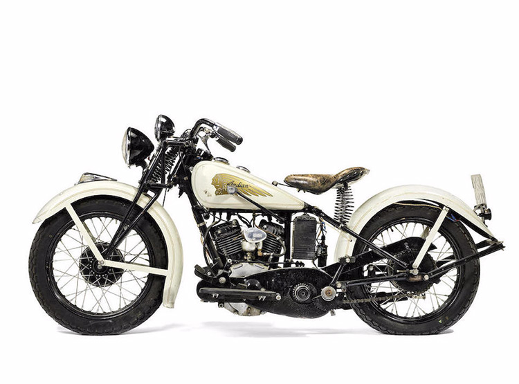 The Scout soon gaining a deserved reputation for durability; so much so that ‘You can’t wear out an Indian Scout’ became its advertising slogan. Contributing to this longevity was the use of gears for the primary drive rather than the customary chain, and this unusual feature would endure until 1933. A 45ci (750cc) variant was first offered in 1927 and then in April 1928 the 101 Scout appeared featuring a revised 750cc ‘flat head’ engine in a new, longer-wheelbase frame. This sporting machine would prove an immense success for the Springfield firm, so much so that its replacement in 1931 by a heavier Chief-framed model was greeted with dismay. Introduced in 1934, the Sport Scout went some way towards retrieving the Scout’s reputation, featuring a lighter ‘keystone’ (open) frame and European-style girder forks. Lighter and faster than its immediate predecessor, the Sport Scout was just what enthusiasts and racers had been crying out for.