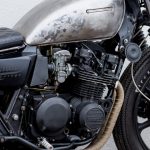 The Scoundrel started life as a 1986 Kawasaki KZ 550, a motorcycle that the brothers’ best friend Tomek was in love with, thanks to its powerful motor and neat six-spoke aluminium wheels. When you work on custom motorcycles day in and day out, you can’t keep your own ride stock, can you? To transform it into a classic cafe racer, the team first cut the frame and closed it with a loop, which made it visually attractive and gave it a much needed spark. The front suspension was shortened by 8cm, with the rear shocks mounted 8cm longer than the original items. The fuel tank was stripped of paint, clear coated, and raised to meet the frame line, while the engine cooling fins were polished to further accentuate the classic feel.