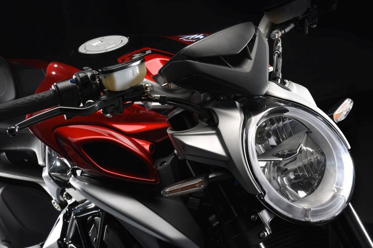 RR stands for maximum power – with 140hp at 13,100 rpm and a maximum torque of 86Nm at 10,100 rpm generated by the presence of two injectors per cylinder. A package specifically developed to retain the riding dynamics and sheer exhilaration of the models prior to the introduction of the new restrictive emission regulations. The result is astonishing; a true technological leap with a refined engine cylinder head developed for noise suppression to the benefit of augmenting ‘permitted’ sound by MV: namely those generated by combustion. With the introduction of new components such as a harmonic damper, a new mechanical cam-chain tensioner, new camshafts, new valve guides, all completely redesigned and utilizing new materials to minimize stresses and vibrations. Noise reduction also extends to the side covers of the engine, which also act as engine protectors. An entirely new countershaft, starter motor, and primary gear drive, are aimed at improving the reliability. The designs of the transmission gears are also redesigned to achieve better meshing and therefore smoother transitions.