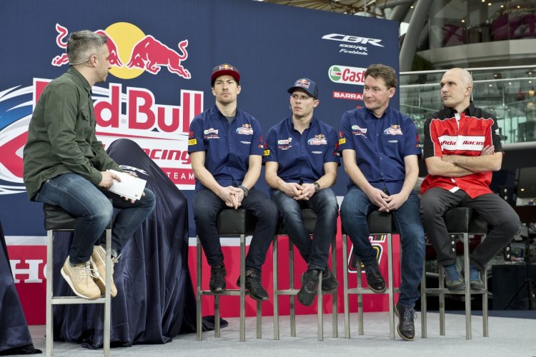 Centre stage were the two riders and their machines sporting the world-famous Red Bull logo and colours. Representatives from the international media, Honda Motor Europe, sponsors, technical partners and WorldSBK organiser Dorna attended the much anticipated event which heralded an exciting collaboration between Honda and Red Bull.